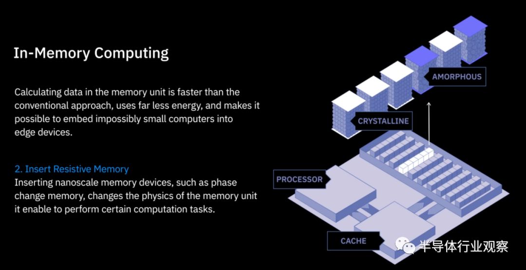 进入了AI时代之后,AI任务对计算性能的需求越来越高,传统的计算和存储分开的架构因为带宽的限制,在数据交换和实时处理上面临严峻的挑战。为此,业界在探索一种被称为内存内计算(In Memory Computing)的方案,IBM方面推出的基于相变存储(PCM)的内存方案则是其中的一种。