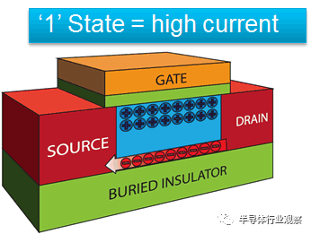 这是一个单晶体管,无电容器的DRAM cell,它使用晶体管主体作为一种电容器,其中的电荷(在这种情况下为空穴)被临时存储在其中。电子空穴从晶体管主体的注入和抽出使得能够调节晶体管的静电行为,从而导致两个不同的电流水平。像InGaAs这样的III-V材料通常具有比硅更小的带隙,而硅原则上具有在低得多的电压下工作的潜在优势。反过来,这转化为可能更低的功耗。