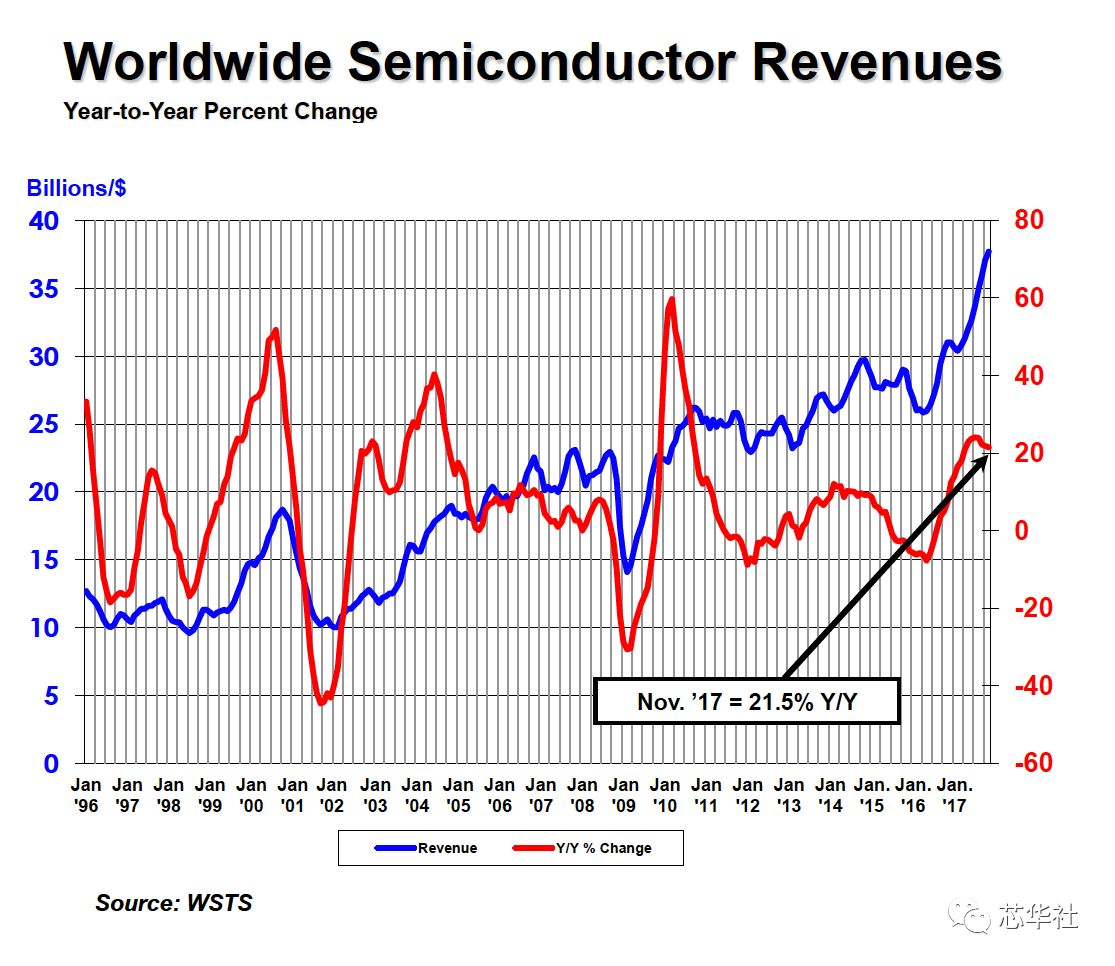 SIA总裁兼CEO John Neuffer指出,全球半导体业11月达到了另一个重要里程碑,创下了有史以来最高的月度销售额,2017年的年度销售应会超过4,000亿美元。